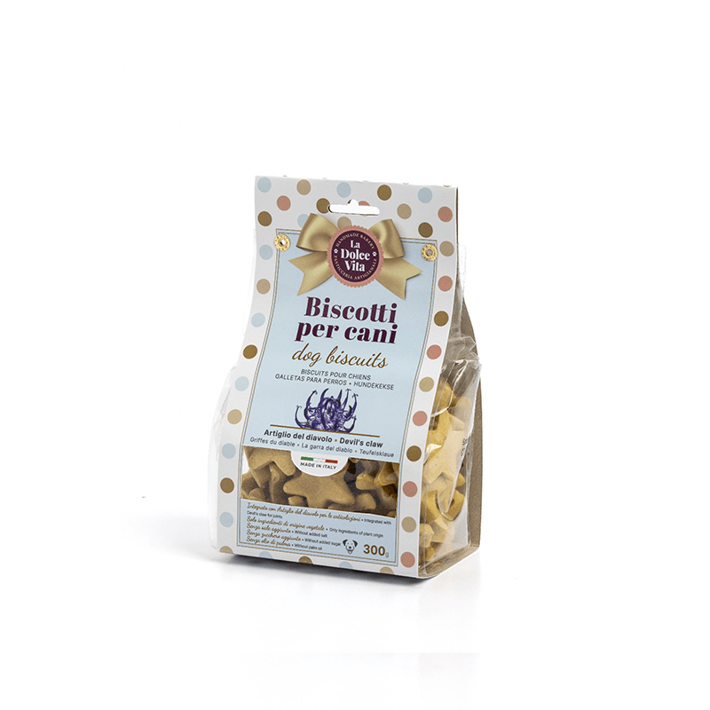 Biscotti artigianali per cani La Dolce Vita con Artiglio del Diavolo da 300gr;Ingredienti naturali, produzione a mano, senza conservanti. Aiuta a supportare la salute delle articolazioni.