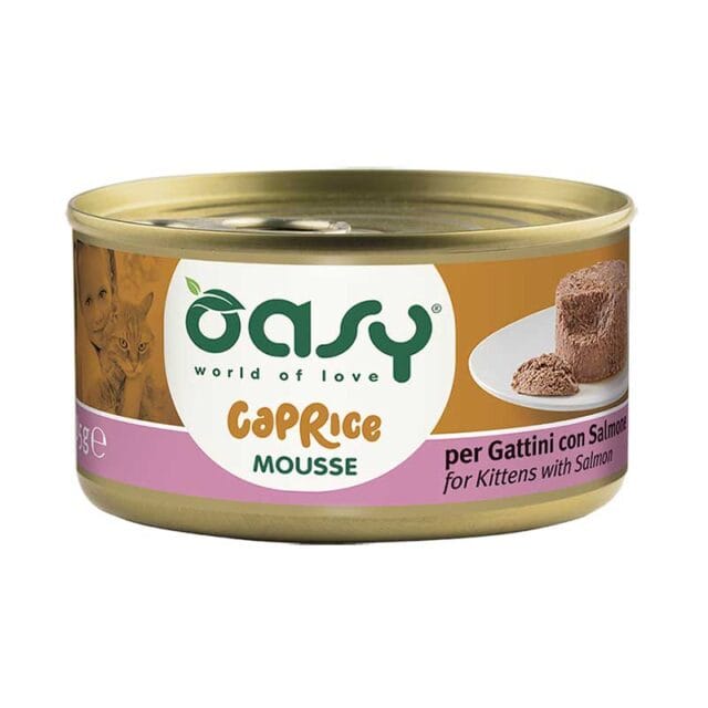 Gustosissima Mousse con salmone dalla soffice e delicata consistenza, ideale per nutrire il tuo gattino fin dai primi mesi. Senza cereali, OGM e soia.
