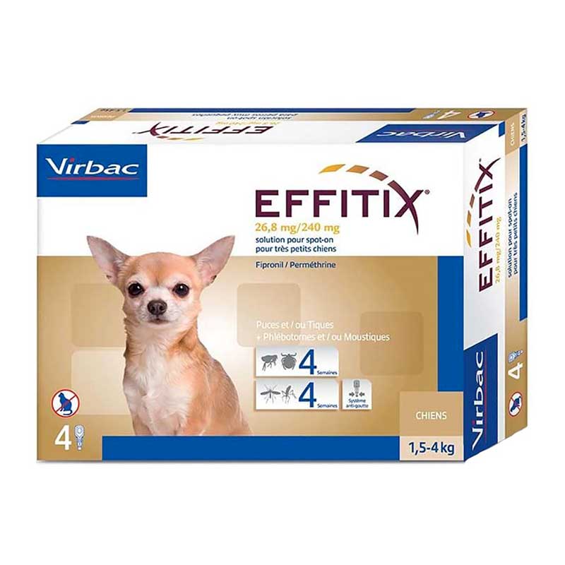 Antiparassitario esterno, fialette per soli CANI da 1.5 a 4kg di peso corporeo , attivo per quattro settimane contro i parassiti (pulci, zecche, zanzare e flebotomi)