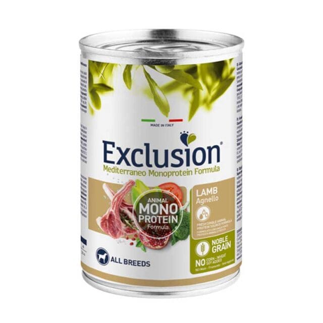 EXCLUSION MONOPROTEICO ALL BREED AGNELLO 400GR E’ UN ALIMENTO ADATTO AI CANI DI QUALSIASI TAGLIA ;