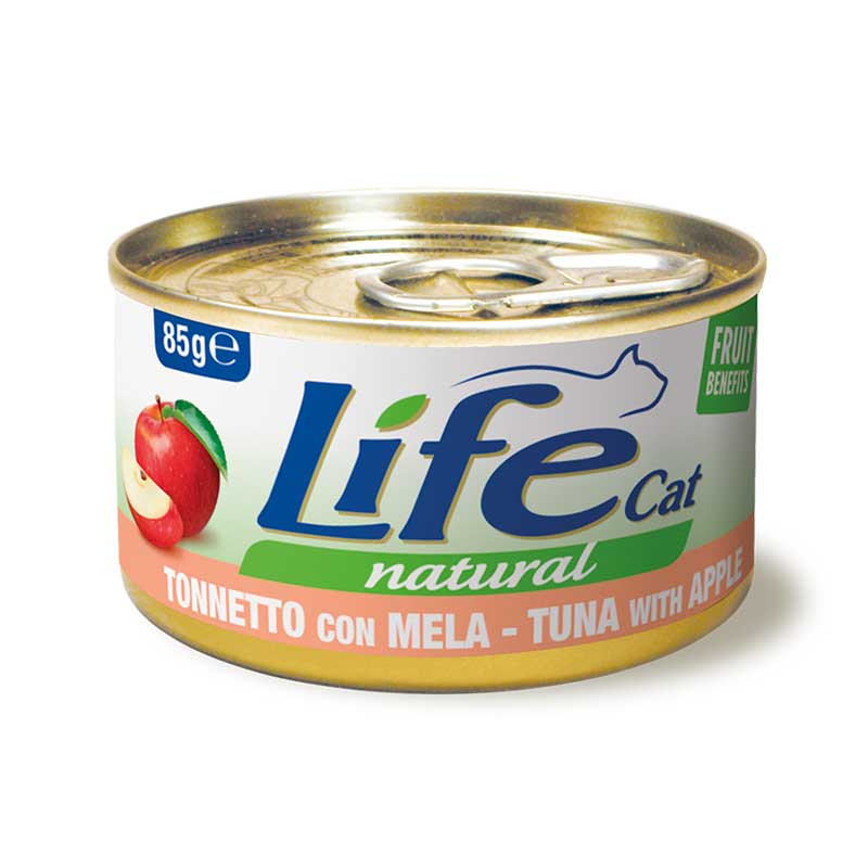 Filetti di Tonno il percentuali alte con aggiunta di Mela a pezzetti . Il tutto presenti in alte percentuali cotto al vapore e conservato in brodo di cottura, senza coloranti conservanti o additivi. Il pollo rende l’alimento ricco di proteine nobili e povero di grassi e carboidrati, nel rispetto delle esigenze nutrizionali del gatto. La mela apporta tutti i benefici della frutta; È infatti un alimento sano e leggero, con molte fibre e vitamine. INGREDIENTI: Filetti di pollo 66%, Mela 5%, Riso 3%, Brodo di cottura; COMPONENTI ANALITICI: proteina 17%, oli e grassi grezzi 0,5%, fibra grezza 0,1%, ceneri grezze 1%, umidità 79%.