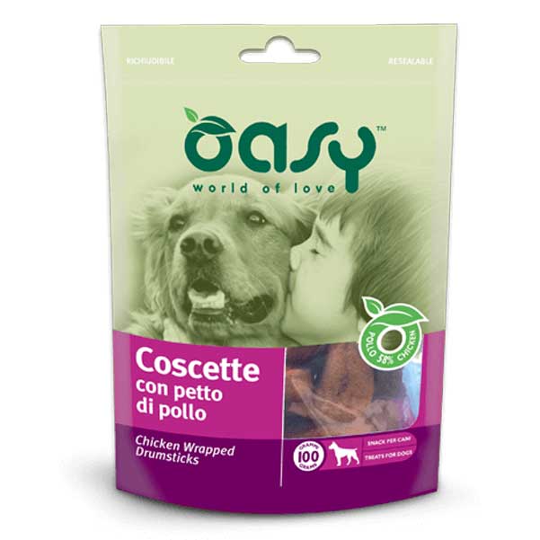 Oasy Coscette con Petto di Pollo 100gr , alimento complementare per cani di tutte le età e taglie;